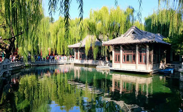 【“天下第一泉”之趵突泉】位于济南“七十二名泉”之首,至今已有2000多年的历史。它也曾多次出现在文学作品中,有代表性的则是老舍笔下的《趵突泉》。而游客来此都是为了一睹趵突泉三股泉水喷发的壮丽景象。澄澈清洌,昼夜喷涌,水盛时高达数尺。除了泉水,公园内还有一处值得观看的景致就是公园的南大门,它布置得富丽堂皇、雍容华贵,大门上的横匾“趵突泉”蓝底金字,是清朝乾隆皇帝的御笔,被人誉为中国园林“第一门”。【五龙潭公园】位于济南旧城西门外,洛源桥北,南临趵突泉,北接大明湖。潭周名泉众多,形成五龙潭泉群,为济南四大泉群之一,内有泉池二十七处。