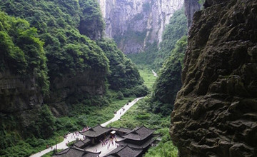 早餐后前往武隆,中餐享用美食—【草原景观老火锅】,后游览国家AAAAA级风景名胜区【天生三桥】(游览时间不低于100分钟,换车40元/人必须消费)以其壮丽而独特的“三桥夹两坑”景观称奇于世。世界最大天生桥群和世界第二大天坑群相映生辉,坑与坑之间以桥洞相望,桥与桥之间以坑相连,规模宏大,气势磅礴,瑰丽壮。是张艺谋06年电影大片《满城尽带黄金甲》唯一外景地,亲临拍摄地、观看投资200万修建的唐朝古驿。
